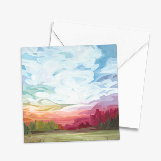My greeting cards are created from some of my favourite abstract paintings, colourful breezy skies and contemporary florals—all in a perfectly shareable size! These beautiful cards are made to be cherished and can be displayed as little pieces of art in themselves.