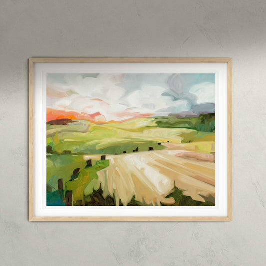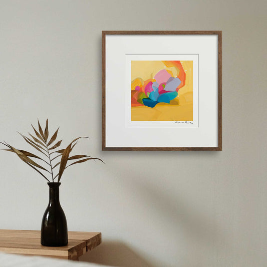 Among my yellow art prints is 'Harvest Yellow', a real zinger of an autumn painting, and ‘Detours - Yellow’ an art print that radiates light as a yellow wall accent. Combining the beauty of abstract art with the colour of sun and buttercups is a wonderful way to bring cheerful energy to your home and transform your interior into a radiant and lively space.