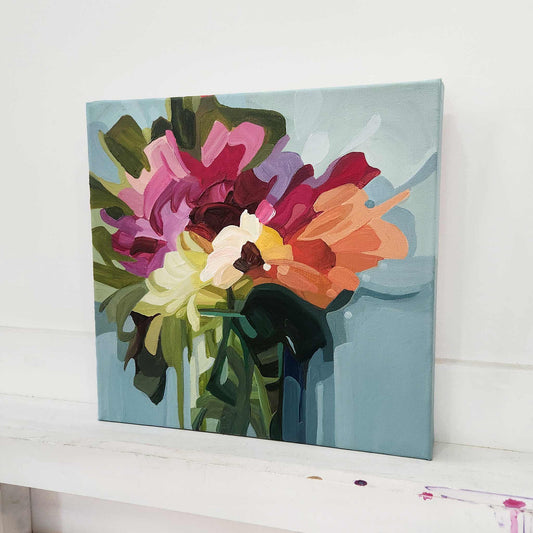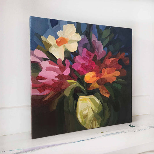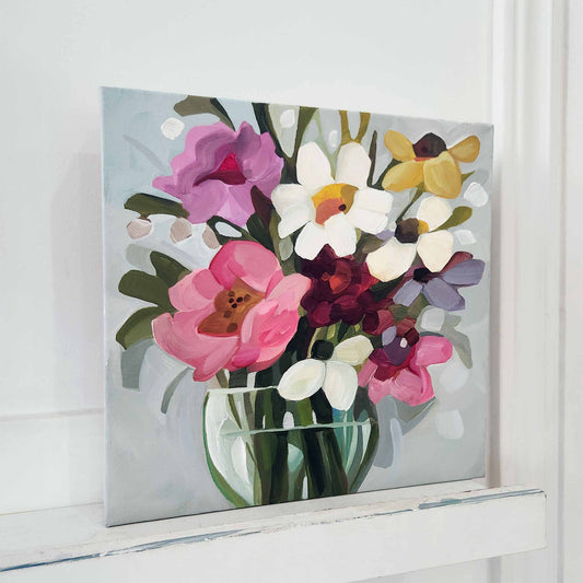 A joyful collection of abstract floral paintings, where spring colour meets imagination and play. While the collection started with a flurry of ideas, each piece balances that spontaneous energy with intention, to reveal expressive and perfectly imperfect blooms.