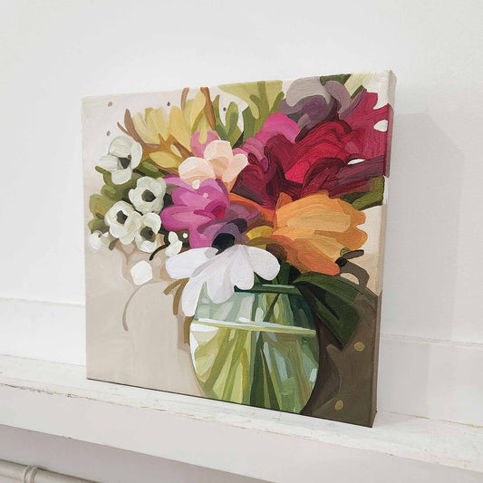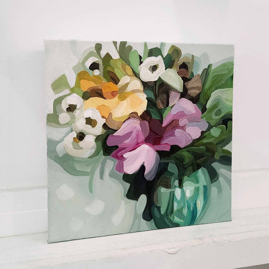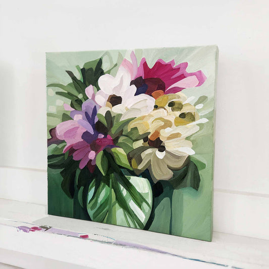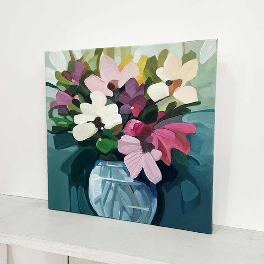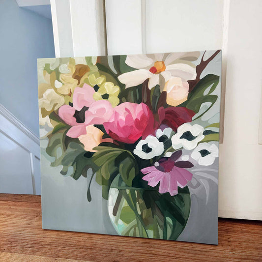 'Fleury' is my flower-forward series of abstract floral paintings, filled with optimism, imagination and vibrant spring colour. Each piece began as a flurry of energy and instinct, then slowly settled into place through layers of paint, time and thought.