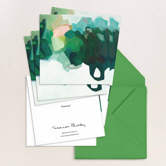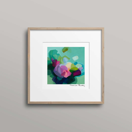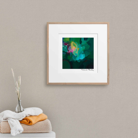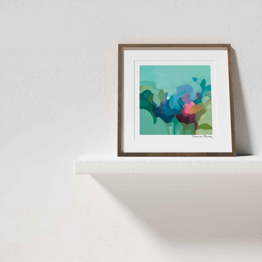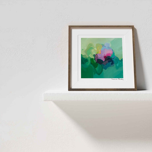 A selection of three green abstract art prints perfectly suited as a gallery wall set. Created specially to fit standard frames, these little 8" x 8" will make make a wall sing!