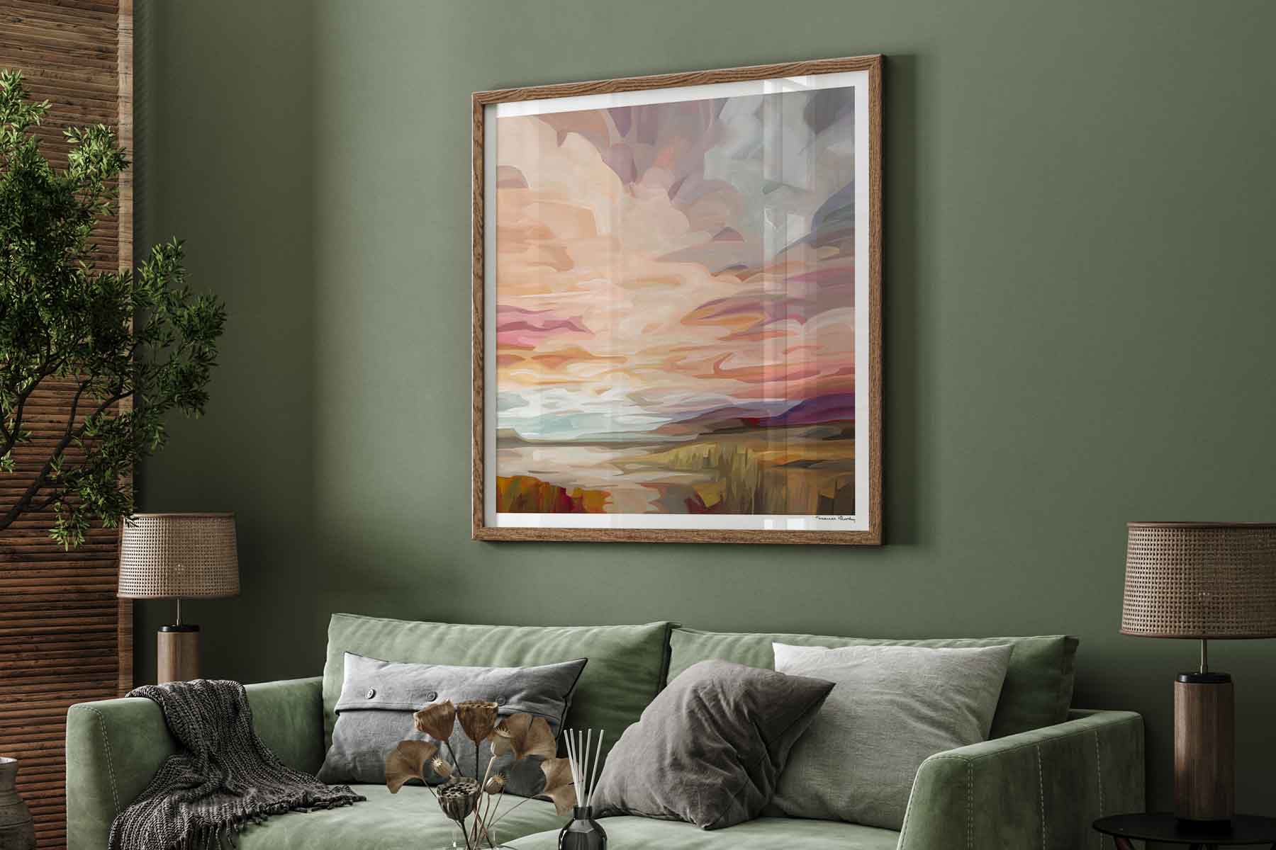 My art prints are created from original oversized paintings, and starting off on large canvases means that I have plenty of room to develop the painting - playing with brushstrokes, blending and achieving the dreamy feeling of wonder in a breezy, cloud-filled sky.