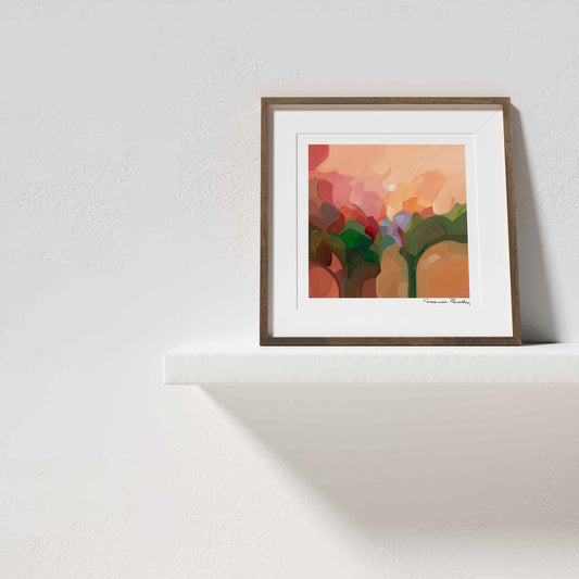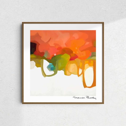 In addition to warming sun and horizon lines, the colour orange also brings to mind the citrus fruit after which it is named. Fragrant, juicy and oh-so-delicious, the fabulous orange abstract painting ‘Citrus’ (also available as a print 😉) pays homage to your favourite orange delights. It's a smooth concoction of orange-y flavours that dazzle as large orange canvas wall art.