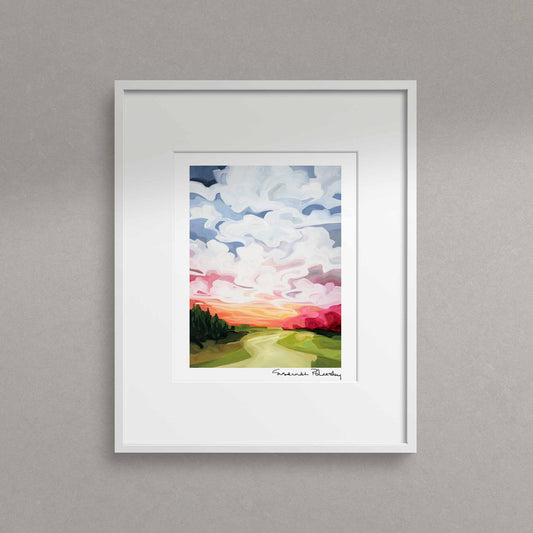 There's nothing like the energy of a vast open sky, and I took that inspiration to the edge of the world in the 'Land's End' collection. With coastline paintings, soft countryside sunrises, dramatic blustery skies and a desert sunset painting these are art prints that will capture your attention and will excite your imagination.