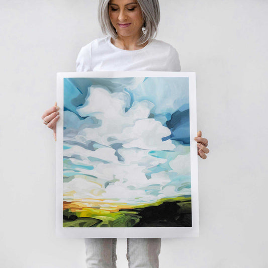 Created from the acrylic sky paintings I'm most known for, these beautiful wall art prints are full of light and breezy joy to bring a sense of peace and calm to your home.