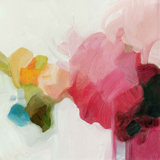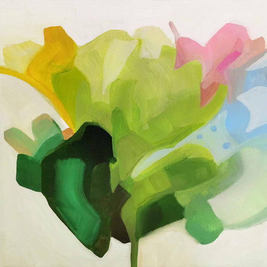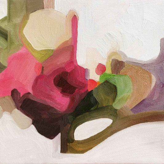 A series of little gardens of colour, painted at the end of last year as the days became darker and the winter winds howled. These little abstract paintings were my light in the dark. The vibrant colours, free-spirited brushstrokes, and buttery quality of the oil paint warmed my soul throughout the winter, carrying me through the colder months with such a smile. Smiles I am thrilled to share!