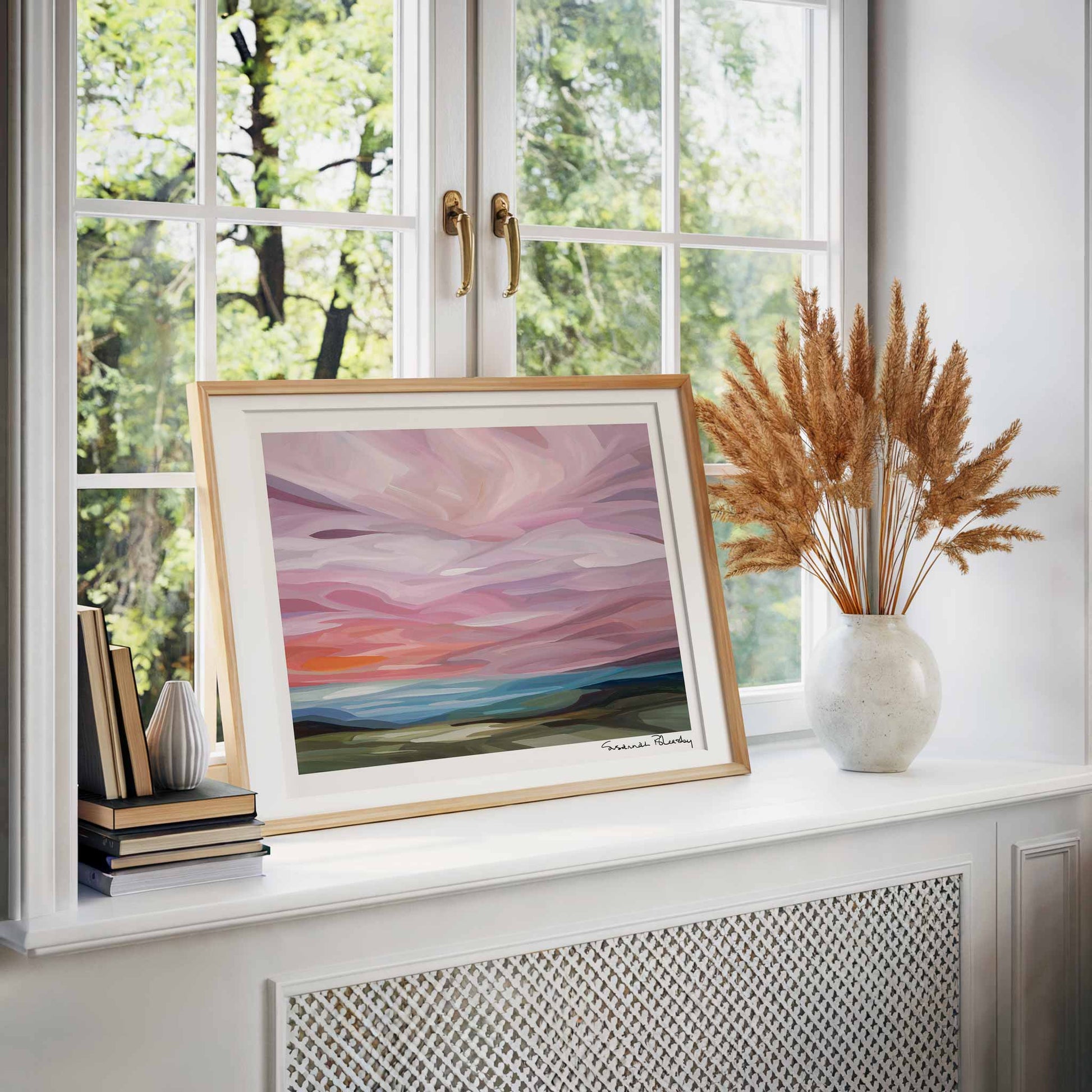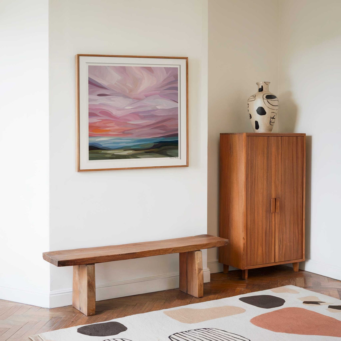 Created from the large scale original sky painting, an art print of 'Angora Eve' brings the soft glow of an evening sky into your home in a size that suits your space.