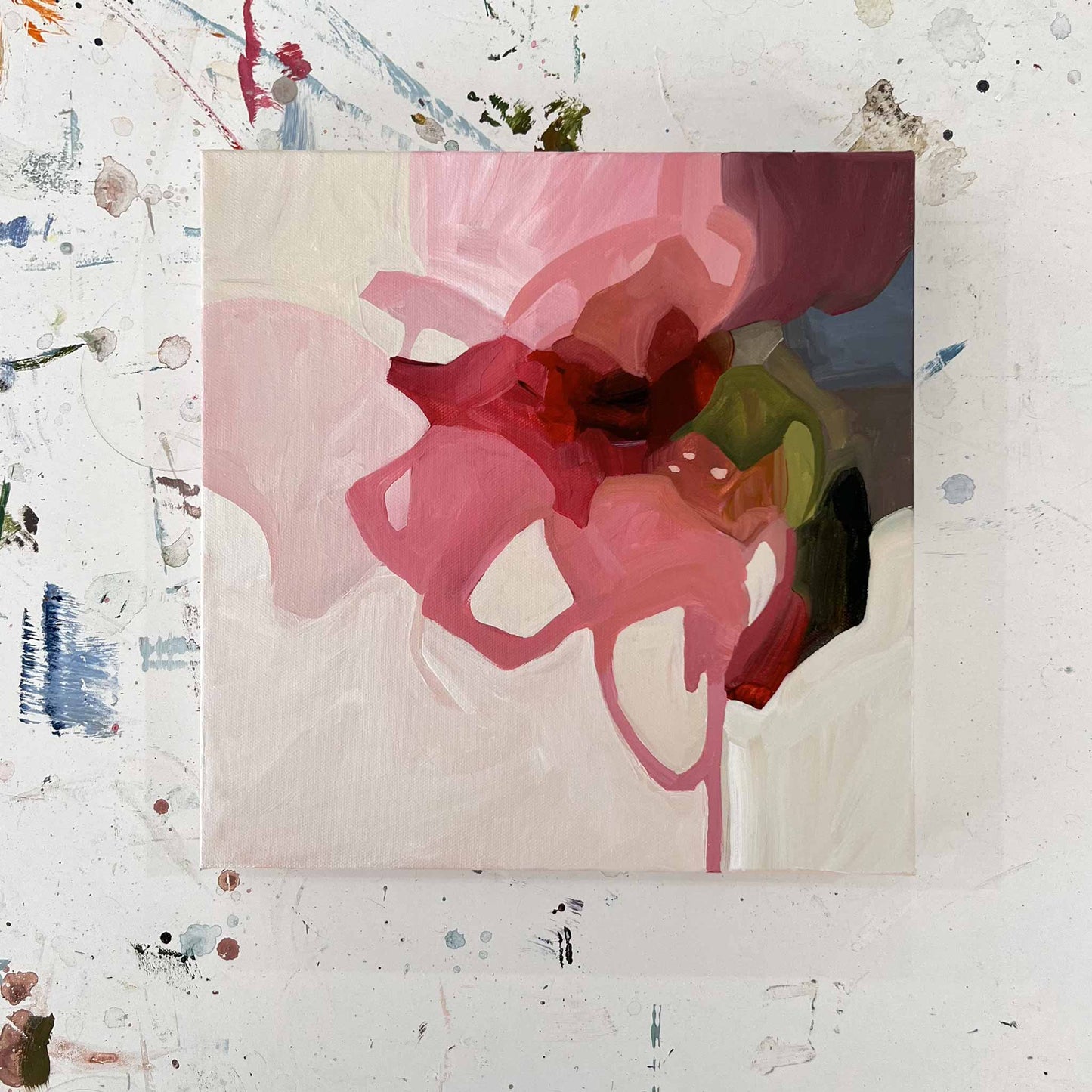 It’s impossible to overlook the floral vibe in this abstract acrylic painting. This small canvas is positively bursting “flower power” inspired by the fresh energy of blush, pink and magenta. There’s a delicate sense of beauty and femininity in the pink petals that is beautifully balanced with a hint of intrigue and mystery in the abstract composition.