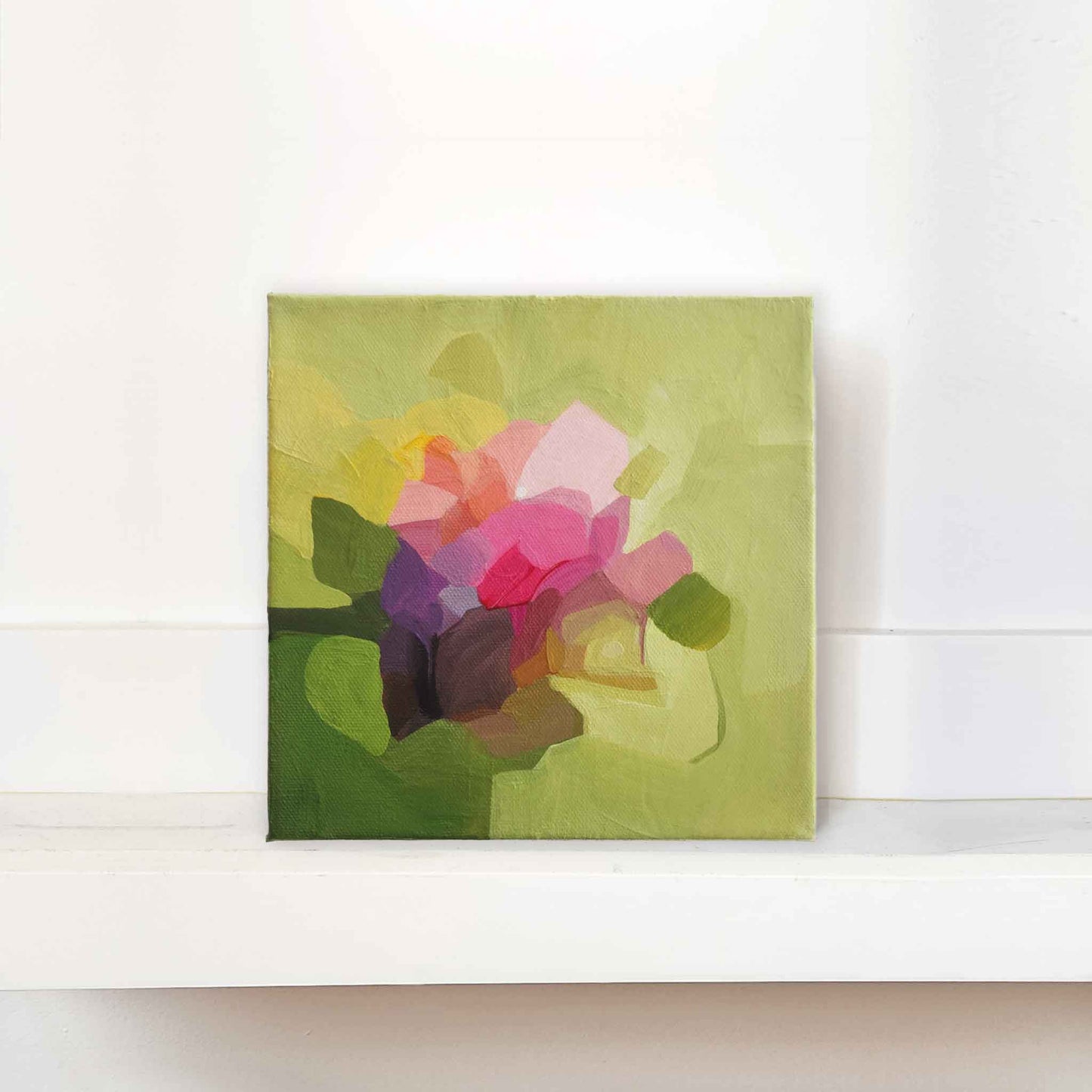 A lovely fresh green floral-esque abstract painting that holds the promise of spring in its brushstrokes. Can you think of a nicer way to add a bit of garden fresh colour to your wall decor?