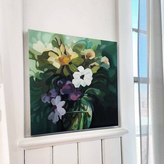 Many of the paintings here are smaller sizes, perfect for inclusion in a gallery wall. I love a good gallery wall! There is a place in every home for one. Grouping images together helps you create an atmosphere and tie a room together while including a mix of sentimental favourites, treasures picked up along the way, and splashes of colour into your decor.