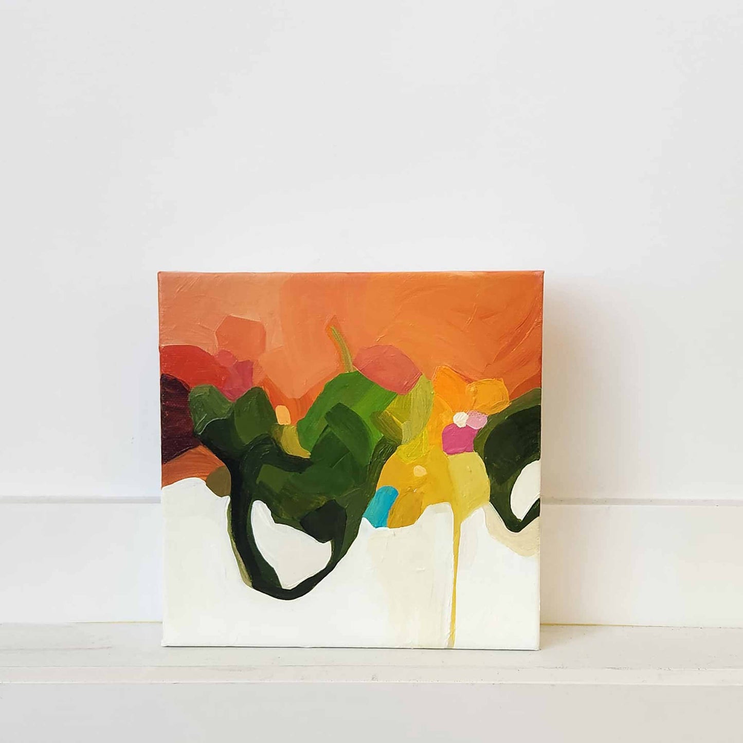 A small orange abstract painting full of zesty citrus energy to add something tangy to a corner of your home!