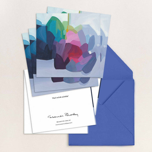 My greeting cards are created from some of my favourite abstract paintings, colourful breezy skies and contemporary florals—all in a perfectly shareable size! These beautiful cards are made to be cherished and can be displayed as little pieces of art in themselves.