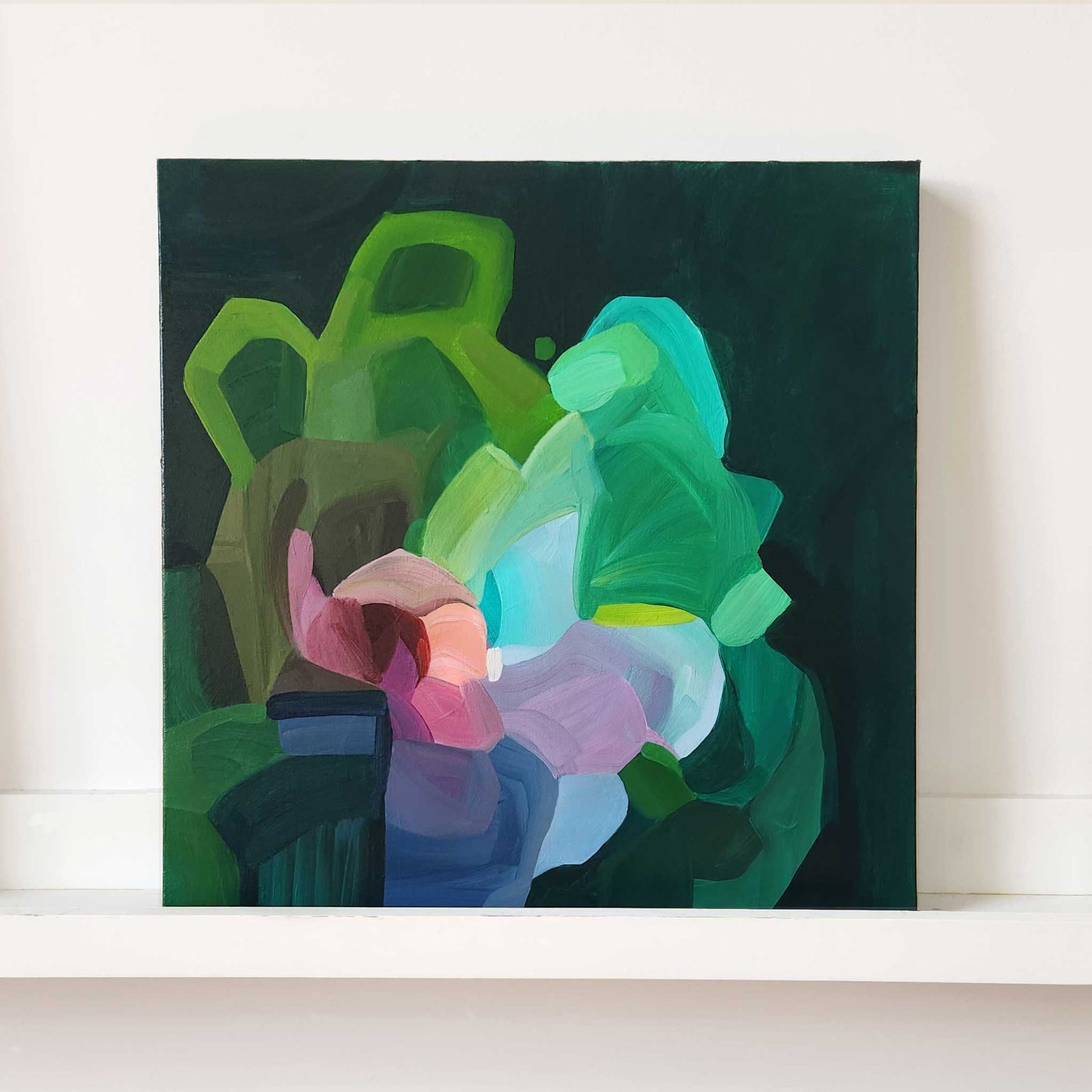 A beautiful tangle of emerald green, found under moonlight, snipped straight from my overgrown garden. Nature run a little amok and I love it! It's a lively knot of floral-inspired brushstrokes pulled from the earth, beautiful in its own colourful way.