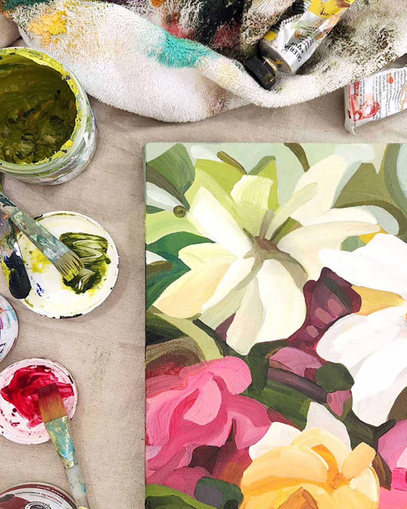 Step into the joyful, messy and colorful world behind my floral paintings.