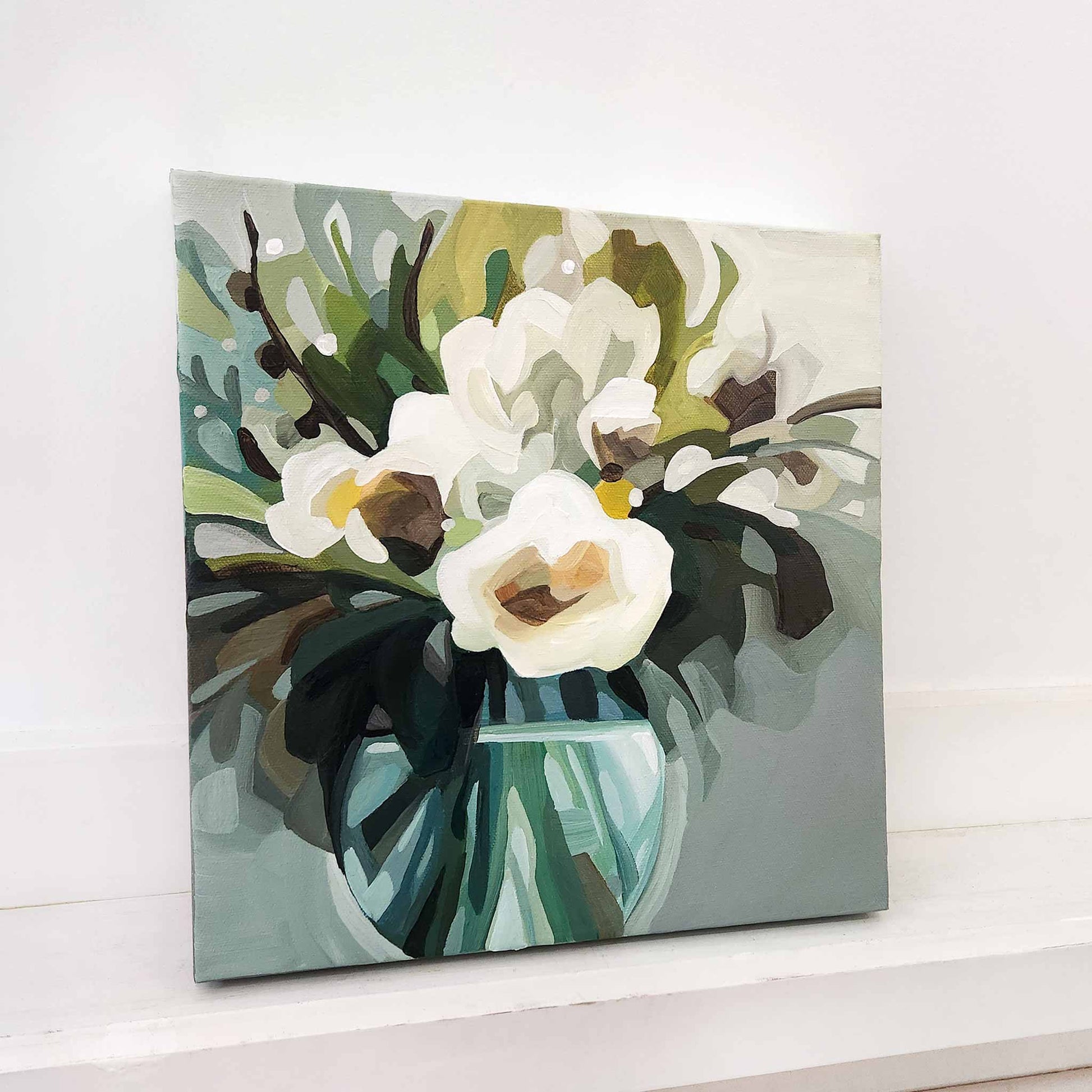 Oh, she's an elegant one, isn't she? With a restrained, sophisticated palette, delicately flowing brushstrokes and quietly confident details, this abstract floral painting feels both refined and distinctive, a truly special piece.