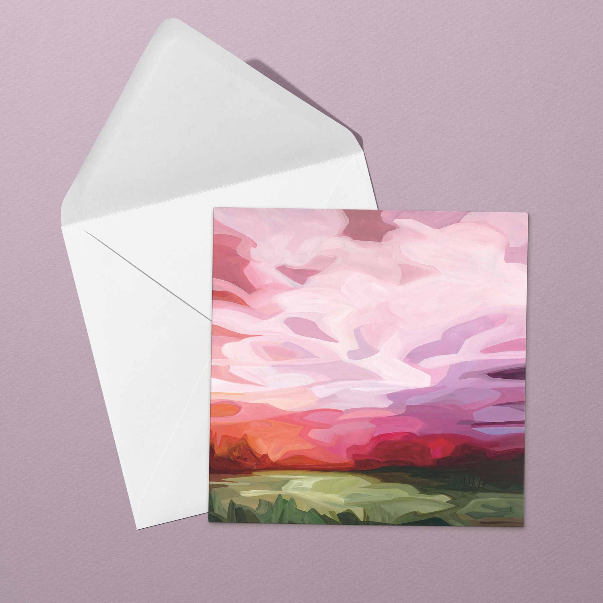 Sun ripened strawberries and long, golden days announce the joyful height of summer in full bloom. Bursting with colour and warmth, this art cards captures the playful energy of swooping breezes, ripe fields and evenings that fade into vibrant nights. Rich with movement and delight, it radiates the carefree essence of summer we all love to savour.