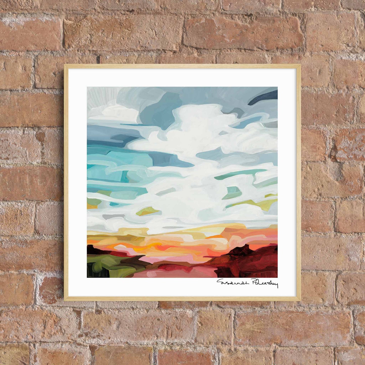 Imagine an early sunrise, where the sky is a soft blend of colors gently spreading across the horizon. The sun, poised to rise over distant hills, casts a warm glow, while delicate wisps of clouds catch its first rays. It’s a tranquil, hopeful scene beautifully captured in a wall art print that evokes the sense of a world awakening to boundless possibilities.