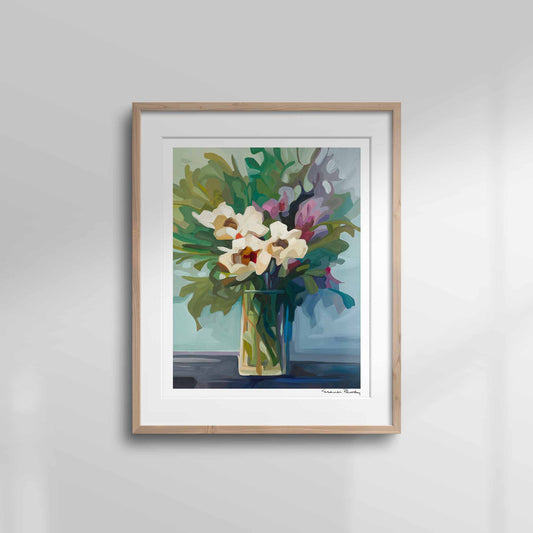 Floral art prints inspired by gardens bursting with colour, warm breeze that make petals dance, and nature's perfectly imperfect charm. Each print is drawn from my original floral paintings—a joyful expression of my love for flowers and the inspiration they bring.