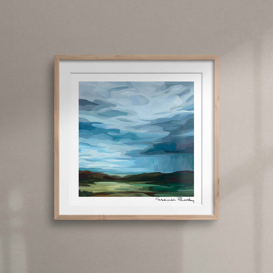 There's nothing like the energy of a vast open sky, and I took that inspiration to the edge of the world in the 'Land's End' collection. With coastline paintings, soft countryside sunrises, dramatic blustery skies and a desert sunset painting these are art prints that will capture your attention and will excite your imagination.