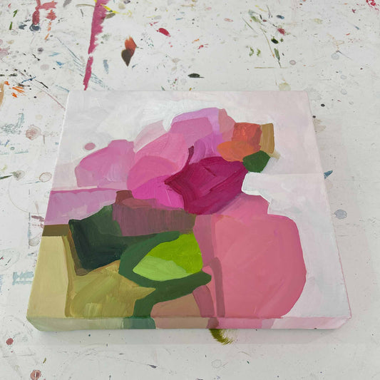 The small abstract paintings you will find here are wonderful additions to a gallery wall. You can sneak in a little 8" x 8" or 10" x 10" abstract painting among the larger pieces in your collection for variety as a colourful accent piece.