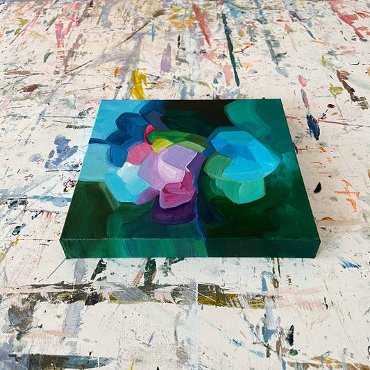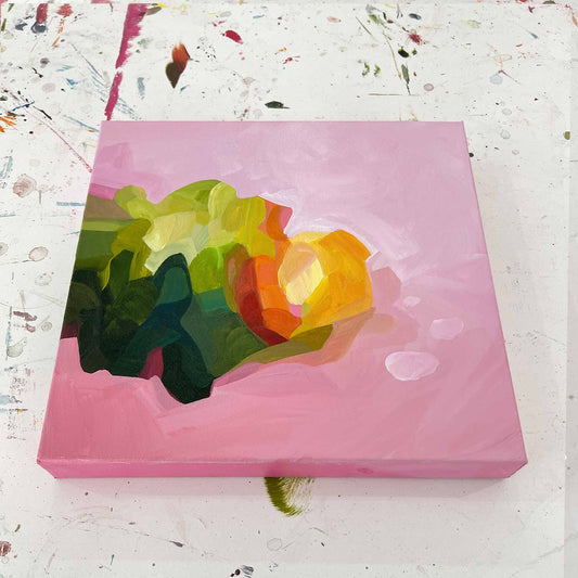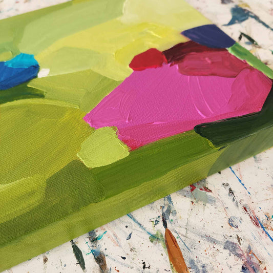 The small abstract paintings you will find here are wonderful additions to a gallery wall. You can sneak in a little 8" x 8" or 10" x 10" abstract painting among the larger pieces in your collection for variety as a colourful accent piece.