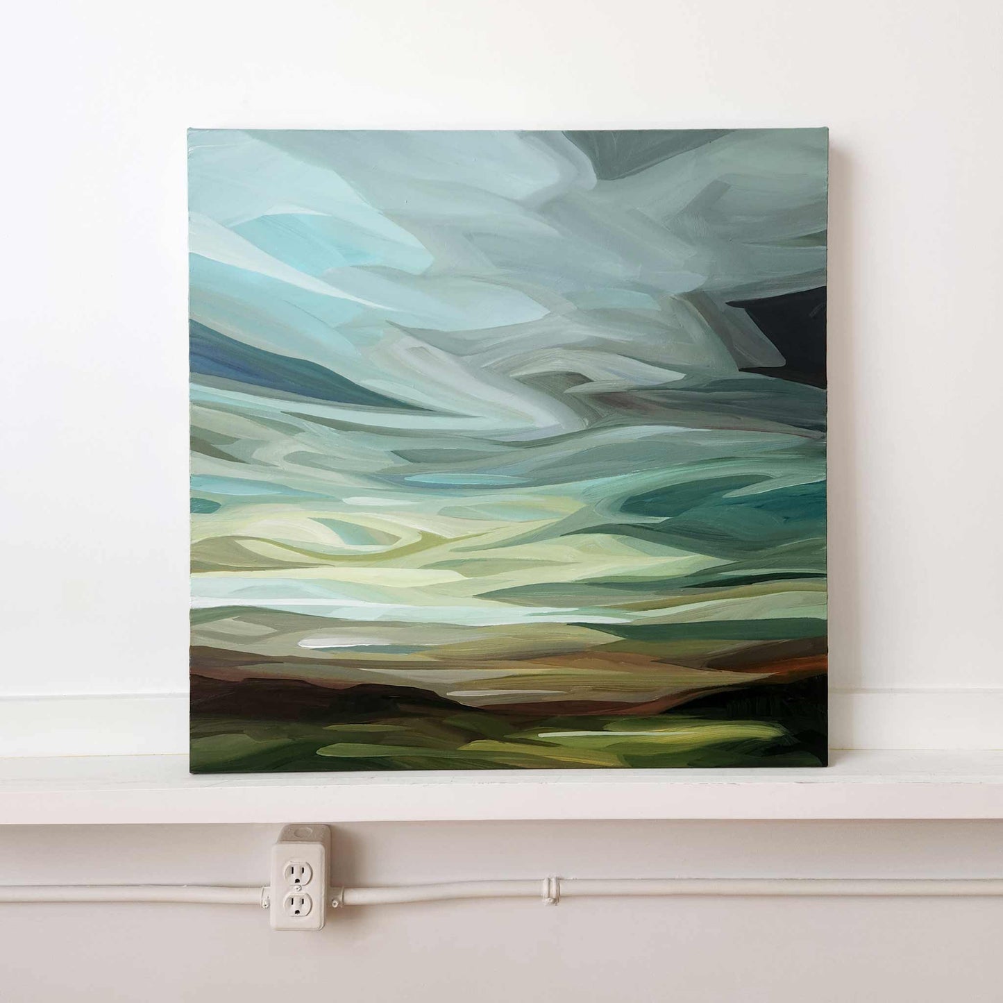 A wave of warm, sea-scented air breezed through my studio the day this lovely sky painting came my way. What a joy it was to follow a powerful intuitive flow of energy wholeheartedly in the moment, watch this painting evolve, and feel so deeply inspired by a simple idea.